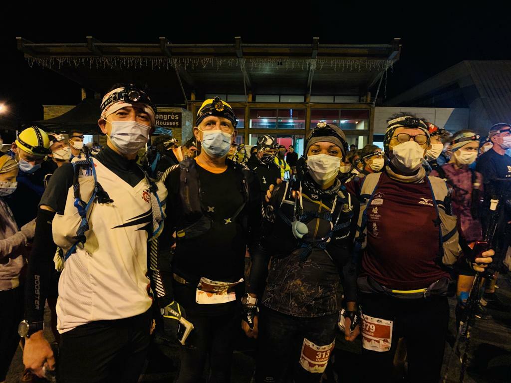 *Excité* sur la ligne de départ un peu avant minuit. Il fait bon, je regrette déjà d’avoir mis le corsaire et le t-shirt mérinos. Mais après l’expérience météorologique de certaines courses passées, il vaut mieux trop que pas assez !