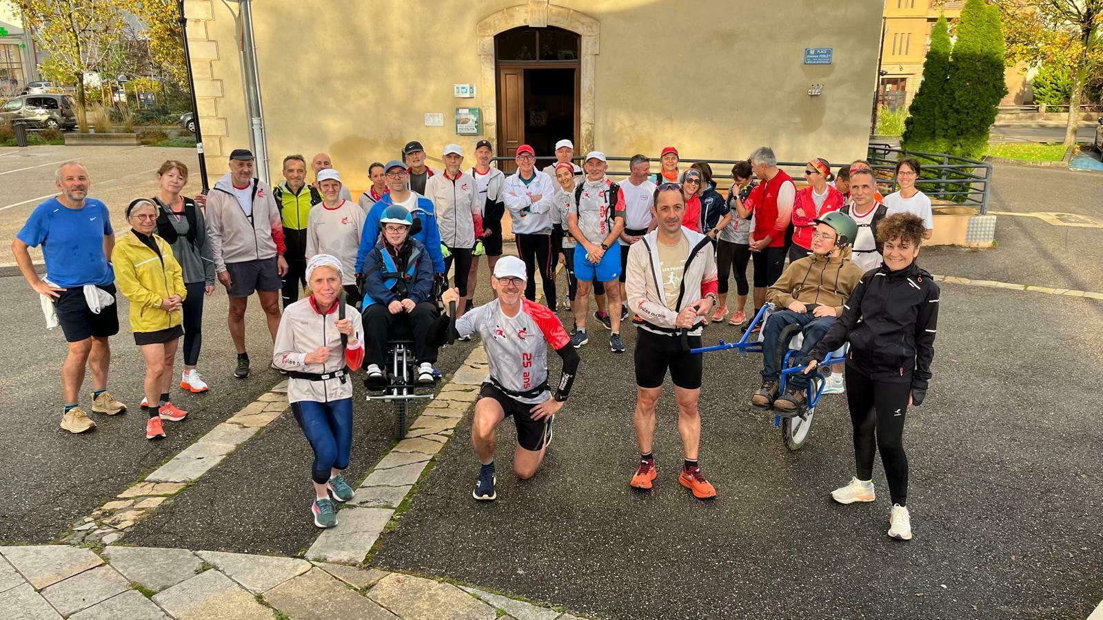 Samedi 15 novembre une grosse trentaine de tortues a profité d'une petite éclaircie entre deux grosses averses pour sortir les joëlettes et accompagner deux enfants sur les routes et chemins des environs.