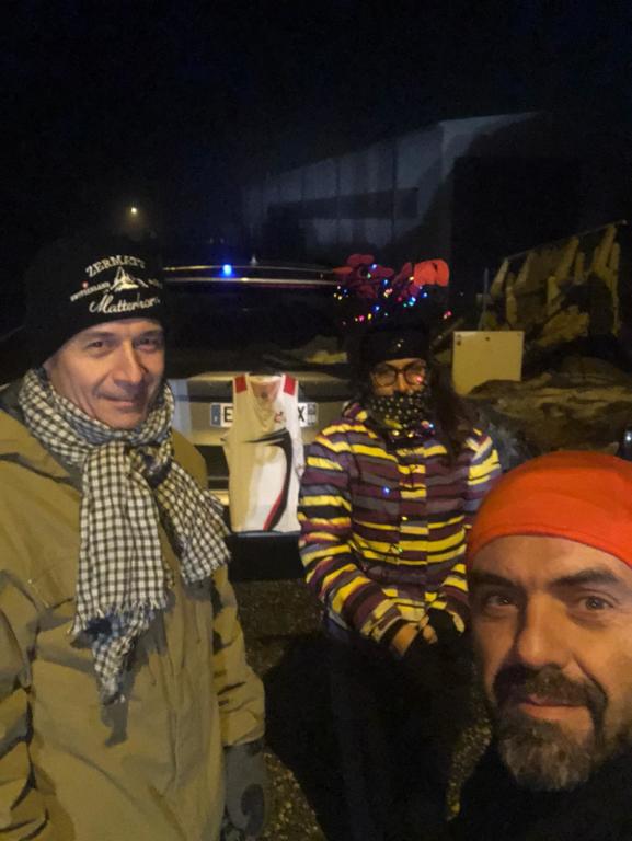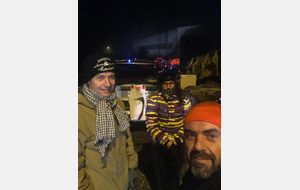 3h00 Nos trois suiveurs cinq étoiles nous attendent un peu avant le sommet. Que ça fait du bien de voir Laetitia, Hervé et Jean-Marc S ! Le coffre de leur voiture est organisé comme une caverne d'Alibaba pour traileurs noctambules en détresse ! Je choisis une soupe bien chaude mitonnée le matin même, mes mains gelées apprécient, mon estomac aussi ! J'en profite pour remettre le deuxième t-shirt, et Pascal me prête ses gants chauds, il ne s'en sert pas depuis le départ. Encore quelques morceaux de pain d'épices, et nous voilà repartis avec le moral au top. Le rythme de reprise est toujours cool, je n'ai pas le choix, mon tendon d'Achille gauche a besoin de 10mn pour s'échauffer, je ne m'inquiète pas. Le plus inquiet pour ma forme semble être Pascal, il me devance constamment et se retourne régulièrement pour me demander si ça va ! Oui tant que je peux marcher en montée et trottiner en descente 😊.
