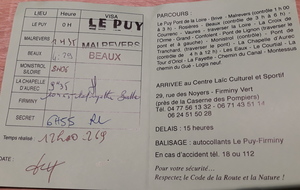 Je bois 2 verres... d'eau et grignote une barre avant le départ donné à 9h02. Mon plan de course : 5h environ, et pas de jus de raisin avant le semi ! Dès le premier ravito, le groupe des "non buveurs"(Bat Laurence, Super Sandrine, Super Gérard, Bat André et moi) prend la tête, les autres (Captaine Cécile, Super Anne-Marie, Super Nadège, Spider Raf, Super Benoît et Super Greg P) s'attardent plus. Je ne les reverrai pas ! Mon groupe s'arrête à tous les ravitaillements officiels, délaissant les officieux pourtant si tentant ! Au château de Pizay (km 10), je cède pour un fond de rouge sous l’œil réprobateur de Batgirl ! Mais pas que : je grignote à chaque fois, bois de l'eau, gazeuse quand il y en a ; bref, je dois penser à la nuit qui va suivre. L'ambiance est très festive, je suis un peu frustré d'être aussi raisonnable. Alors quand à un point de dégustation sauvage Super Pastis est acclamé et invité chaudement à s'arrêter, je laisse sans regret mes compagnons poursuivre le temps de savourer de la charcuterie de très bonne qualité... avec un fond de verre ! Cela ne m'empêche pas de rattraper ma bande de supers.